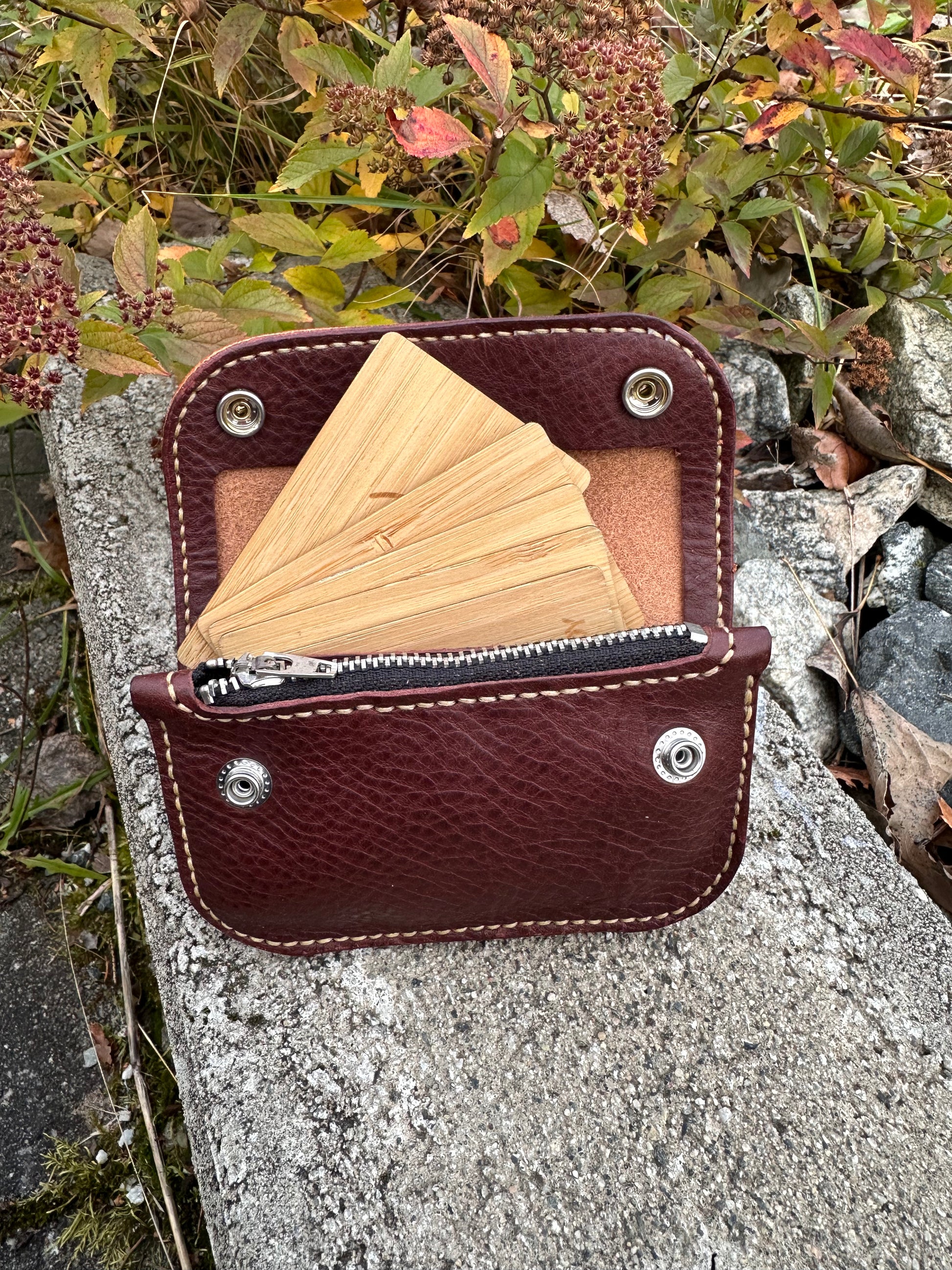 Fjordheim er en håndlaget lommebok i førsteklasses vegetabilsk garvet lær.